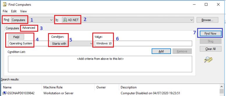 - This will pop up the “Find Computer” window and you need to apply the below filters