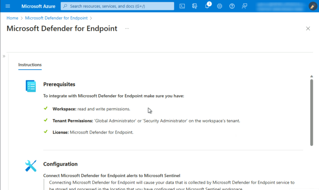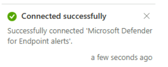 Navigate to Configuration section and click on Connect button. You’ll received a notification – Successfully connected Microsoft Defender for Endpoint alerts.