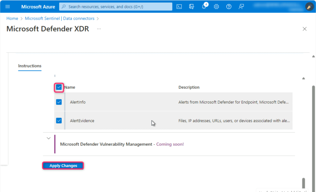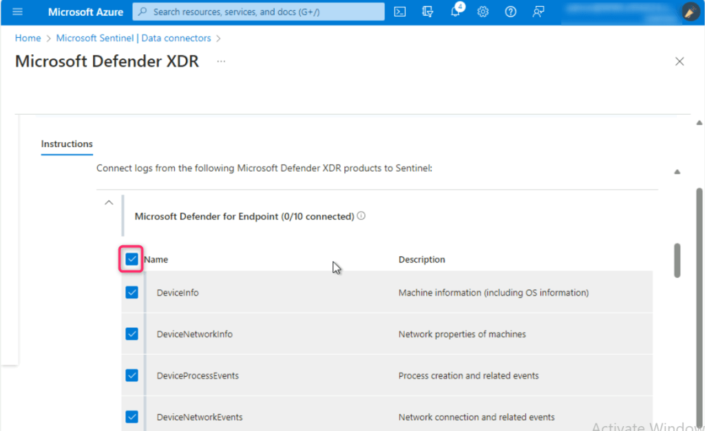 - Connecting Microsoft Dender for Endpoint and Microsoft Defender XDR data connectors to Sentinel for enhancing security capabilities.