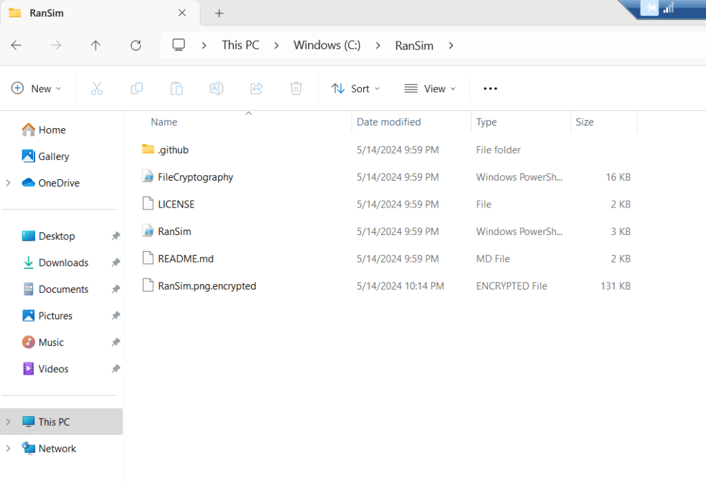 RanSim is a ransomware simulation script written in PowerShell. It recursively encrypts files in the target directory using 256-bit AES encryption. RanSim has no self-spreading capabilities and will only run on the system you execute it on.
