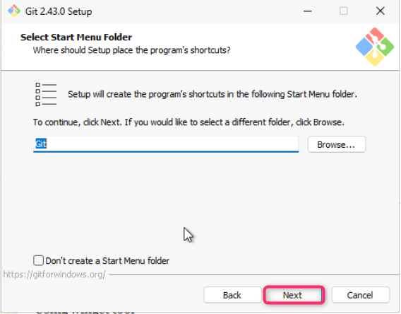 - On Select Start Menu Folder dialog box, click on the Next button.