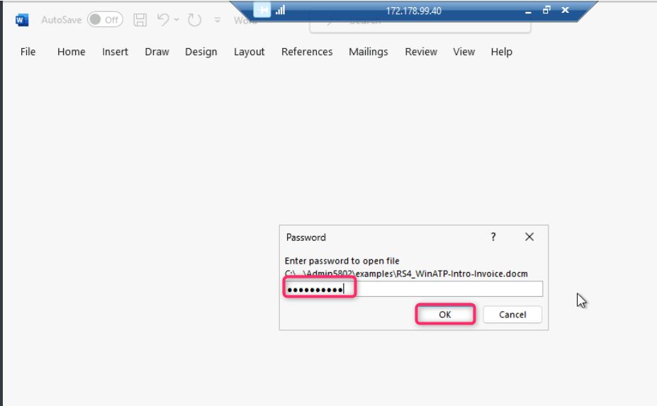 - You will be prompted to enter the password, provide the password as WDATP!diy# and click on the OK button.
