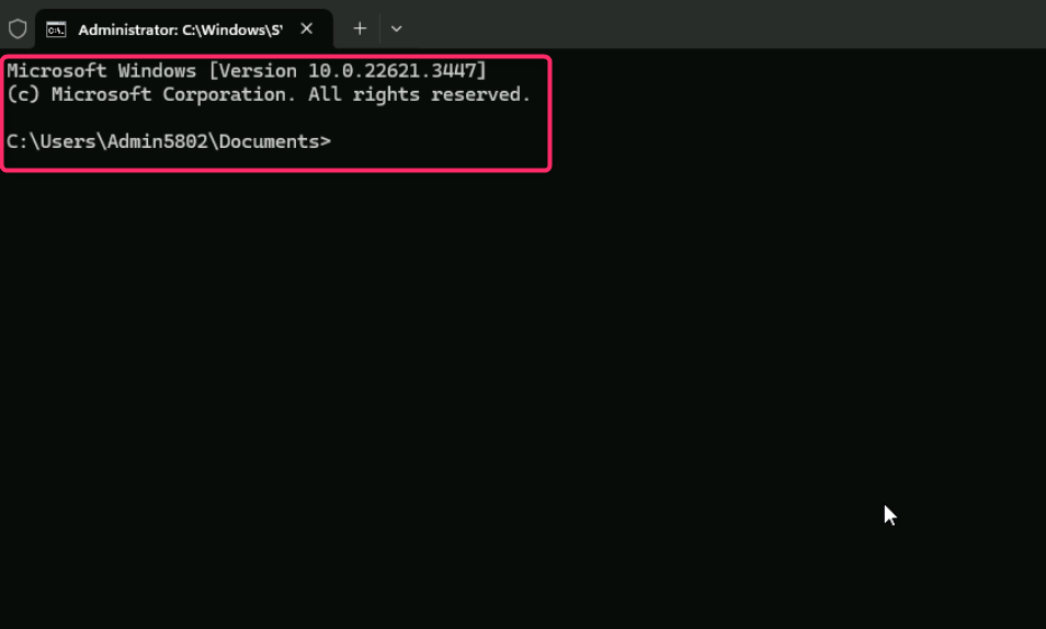 - After the command successfully executed, press the Enter button.