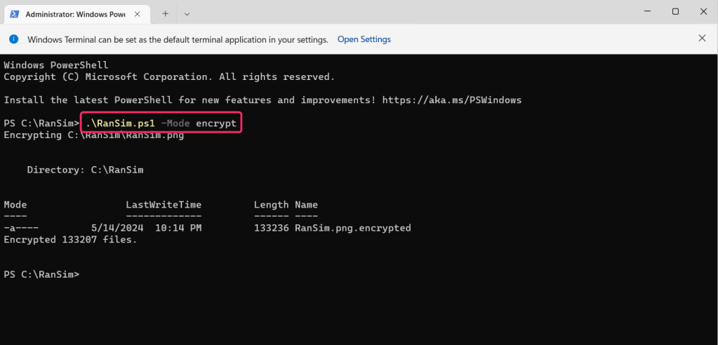 .\RanSim.ps1 -Mode encrypt
