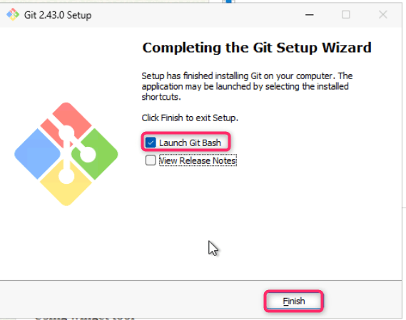 - Select Launch Git Bash checkbox and then click on the Finish button.