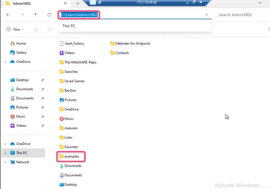 - Navigate to C:\Users\Admin5802, then click on examples folder as shown in the below image.