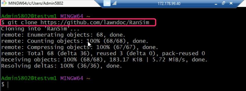 - Download the RanSim folder in testvm1 using the following script: