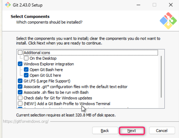 - On Select Components dialog box, click on the Next button.