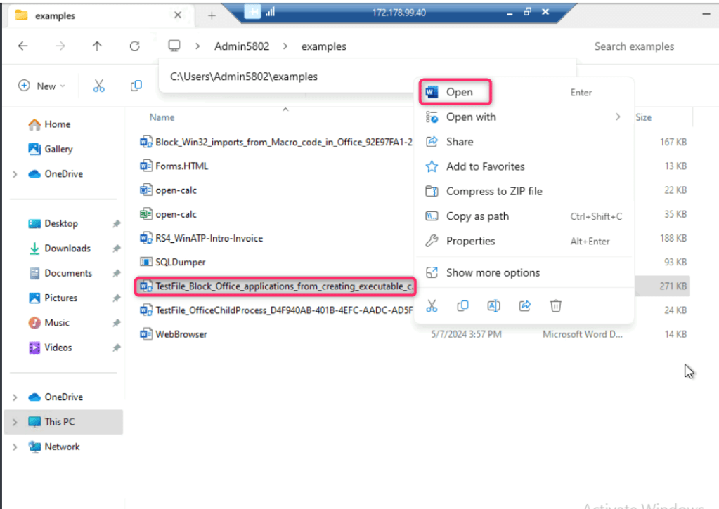 - Open TestFile_Block_Office_applications_from_creating_executable in word as shown in the below image..