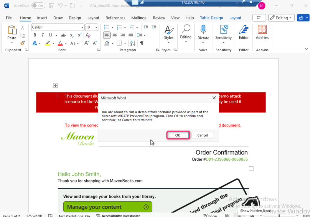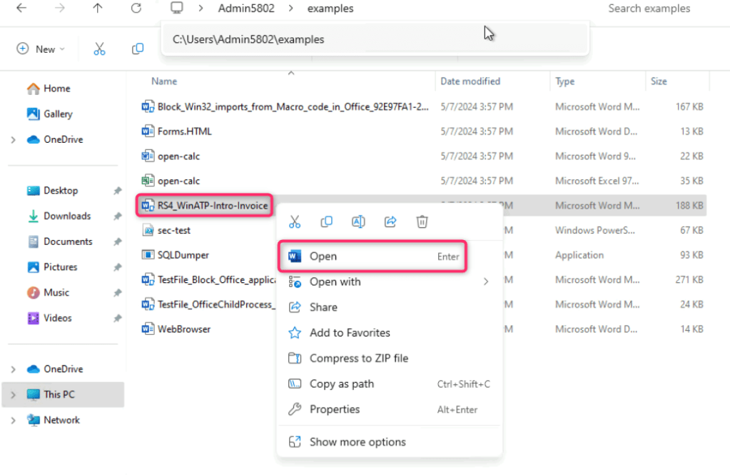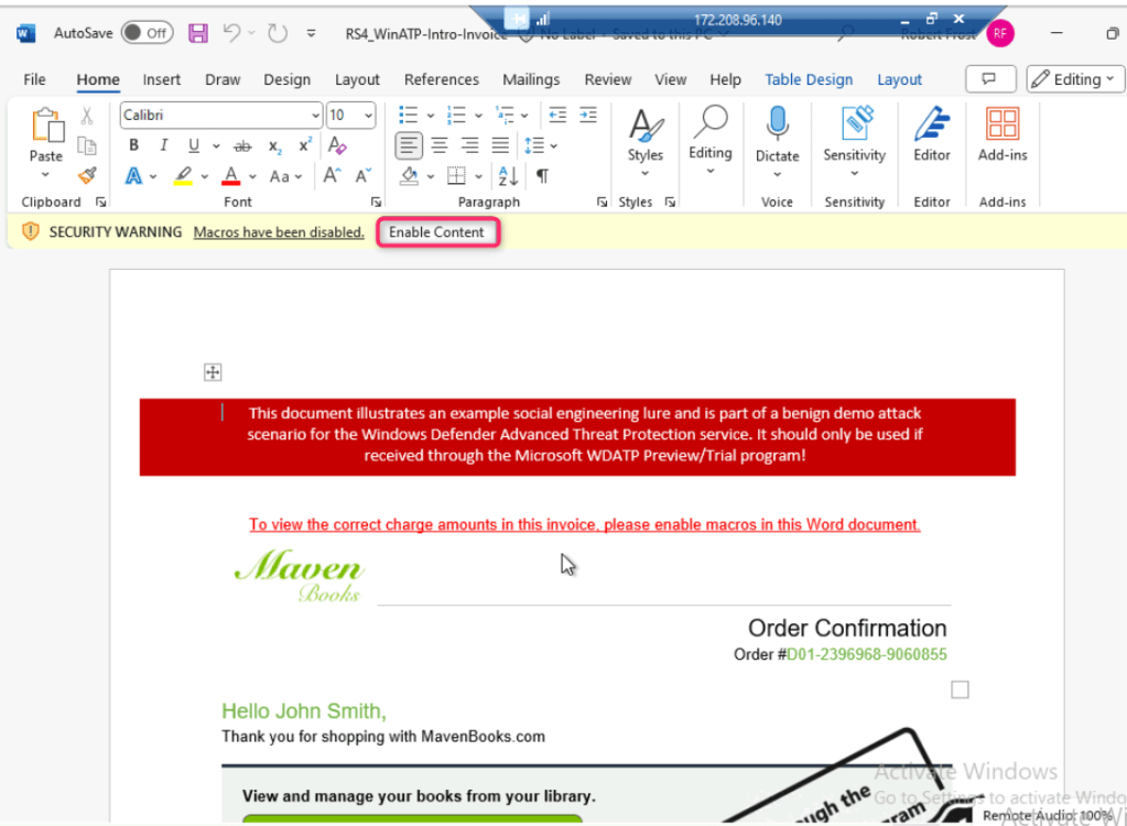 - Right click on RS4_WinATP-Intro-Invoice and open the file in word.
