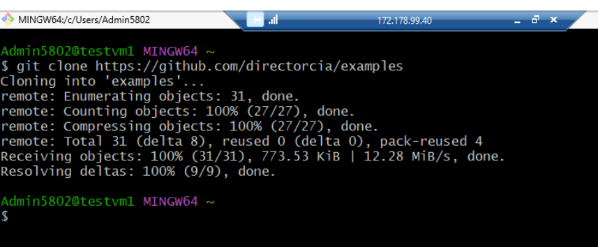 - In Git Bash, execute the following command to download examples folder containing various malware files and scripts.